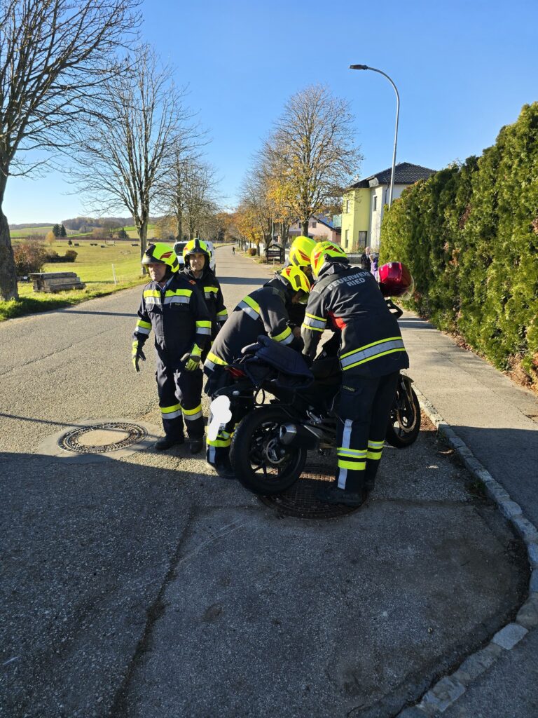 Am 07.11.2025 um 13:57 Uhr wurden wir gemeinsam mit der Freiwilligen Feuerwehr Ollern zu einem Verkehrsunfall zwischen einem Pkw und einem Motorrad alarmiert. Die Freiwillige Feuerwehr Ollern übernahm die Verkehrsregelung, reinigte die Fahrbahn und brachte Ölbindemittel auf. Die Freiwillige Feuerwehr Ried am Riederberg klemmte die Batterie des Motorrads ab. Der Motorradfahrer wurde mit dem Christophorus-Notarzthubschrauber ins Krankenhaus transportiert.