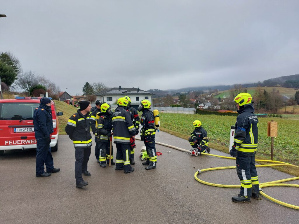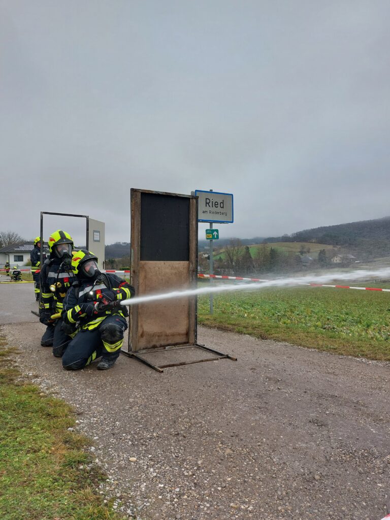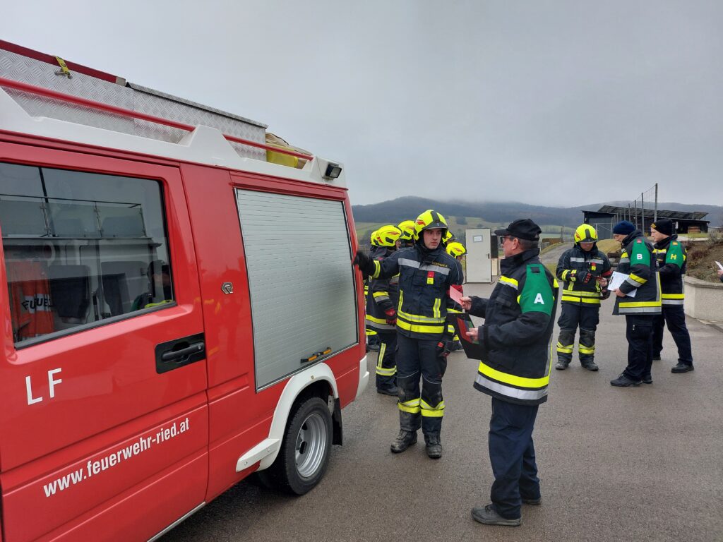 Nach einigen Übungen stellte sich am Samstag, den 13. Dezember, die Freiwillige Feuerwehr Ried am Riederberg der Ausbildungsprüfung Löscheinsatz. Der Fokus liegt hier nicht auf dem Erreichen von Bestzeiten, sondern auf der korrekten und sicheren Durchführung aller notwendigen Tätigkeiten mit der feuerwehrinternen Ausstattung. Simuliert wird hier ein Brandeinsatz mit Innenangriff unter Atemschutz. Die Ausbildungsprüfung trägt damit wesentlich zur Basisausbildung im Feuerwehrwesen bei.