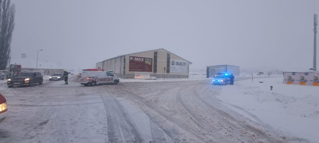 Aufgrund der Schneefälle wurde die Freiwillige Feuerwehr Ried am Riederberg um 06:44 Uhr zur Unterstützung der Straßensperre bei der Kreuzung B1/B213 alarmiert.