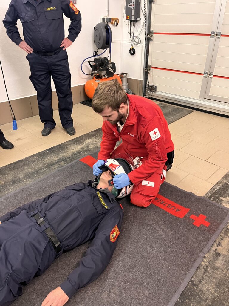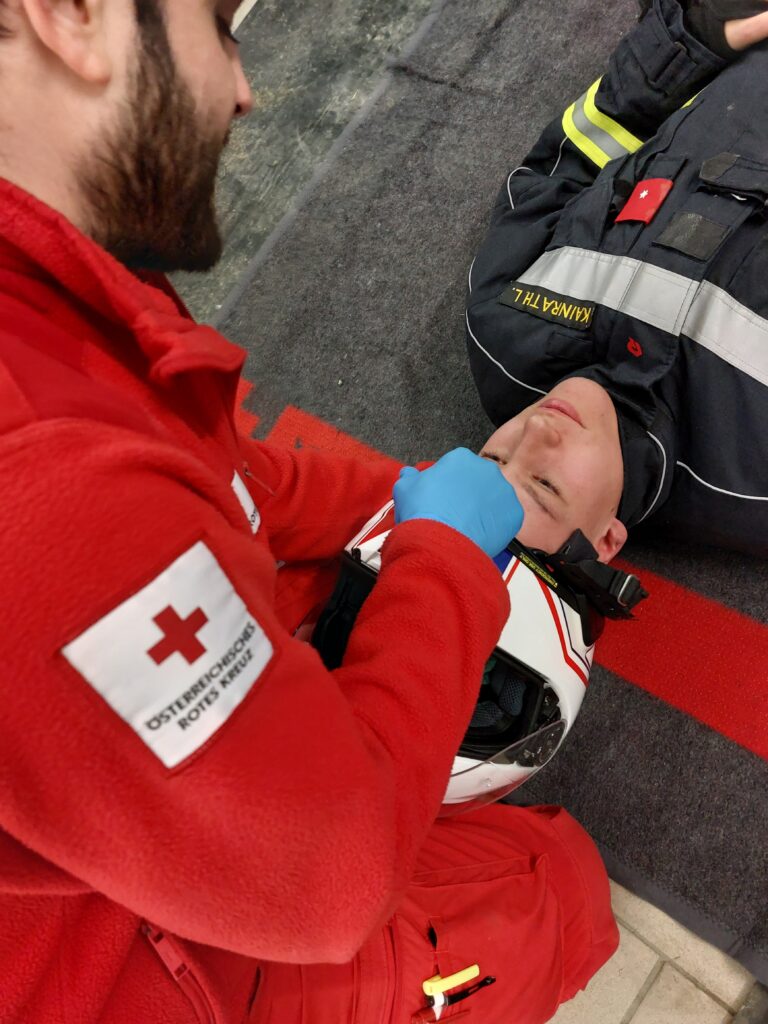 An unserem letzten Feuerwehrtag stand eine Schulung bzw. Auffrischung zum Thema Erste Hilfe auf dem Programm. Geübt wurde das Abnehmen des Helms eines verunfallten Motorradfahrers, das Retten einer Person mittels Rautekgriff aus einem Auto sowie das Stillen starker Blutungen. Wir danken dem Roten Kreuz Purkersdorf für die Durchführung der Schulung.