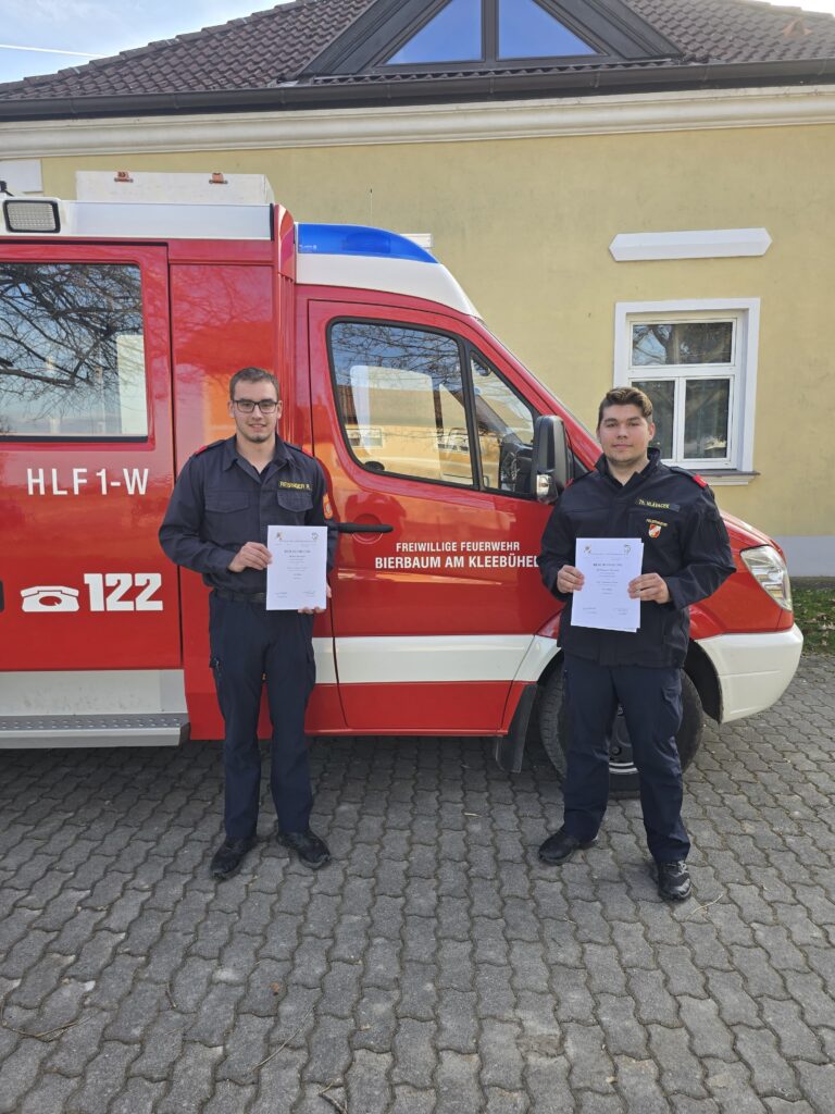 Die Freiwillige Feuerwehr Ried am Riederberg gratuliert Thorsten Hlavacek und Rene Reisinger zum erfolgreichen Abschluss.